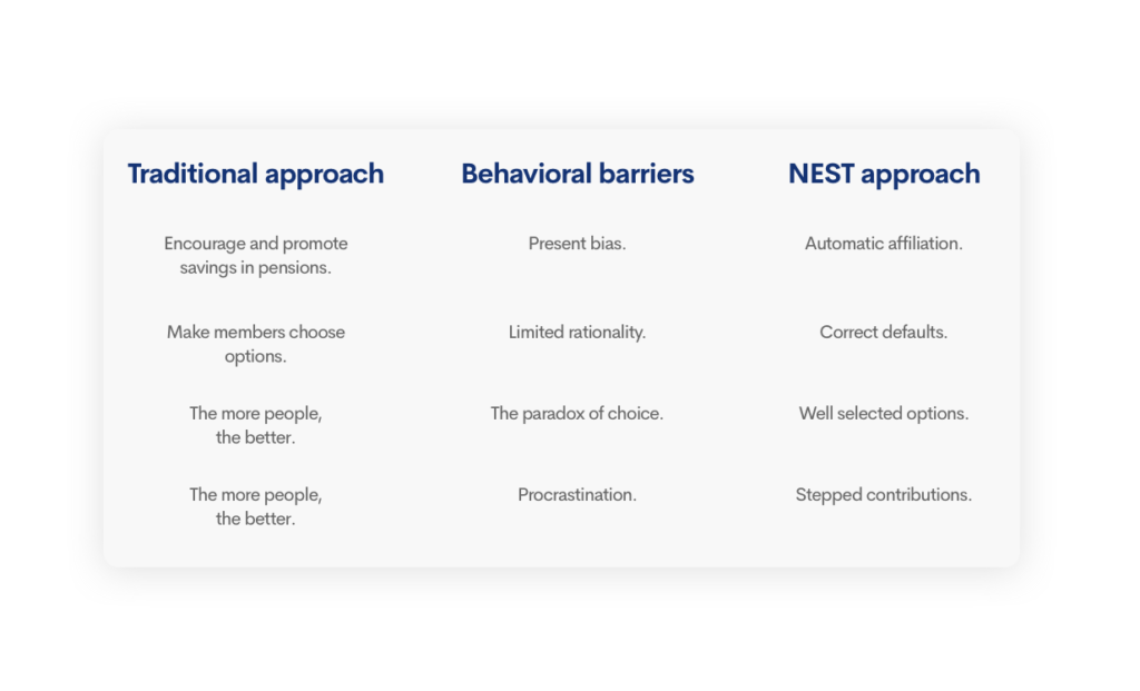 This approach comes from the system of pension plans in the United Kingdom. They discovered something that everyone knows: humans are lazy. And this affects our behavior. So, they thought that the pension plans couldn’t continue to be something passive. Because they couldn’t wait for people to join the pension plan of their own accord. So, they did it in reverse. The companies would dedicate a part of the payroll of each worker to a pension plan for that worker. And the reasoning is simple. Since we are lazy, if we have to do it ourselves, we do not do it. And if we have to take it away (as in the United Kingdom) we will not take it off either.