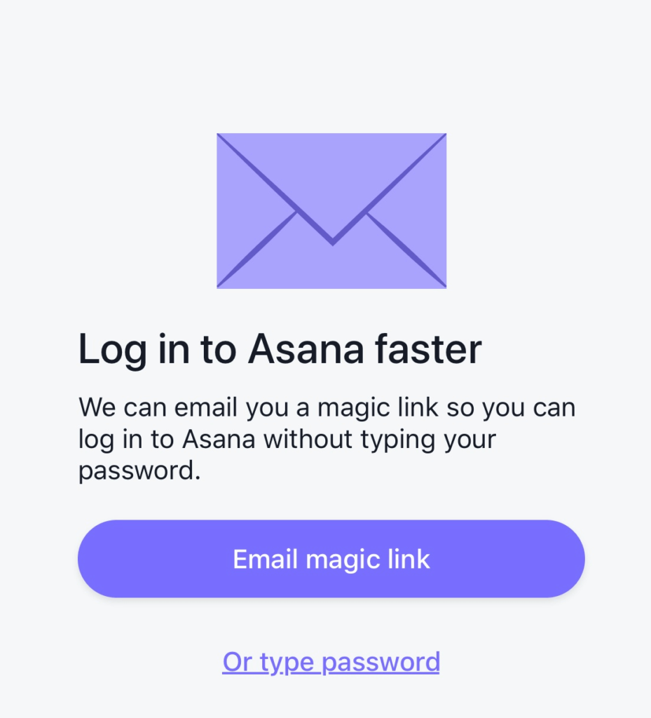 Choose the magic link option when you’re setting up the project management tool Asana on your mobile, and you’re up and running in seconds.
