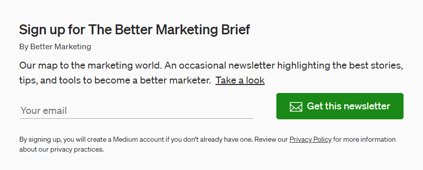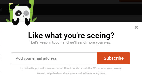 While the cute panda is doing some work to encourage more people to sign up for Bored Panda’s newsletter, the copy is strong too. This signup message is placed at the end of an article you just read and hopefully enjoyed.
