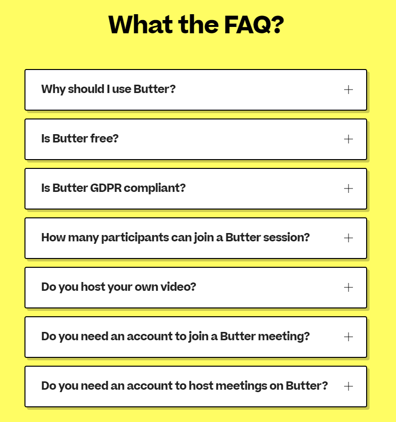 The virtual collaboration platform Butter has a strong brand voice – this may be too edgy for some people, but if you know your audience, bold choices like this can be a great idea.