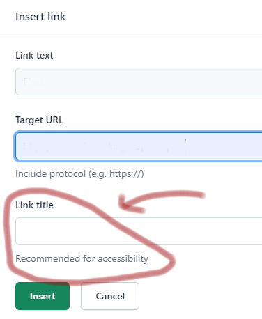 A helpful hint from Contentful that a field is recommended for better accessibility.