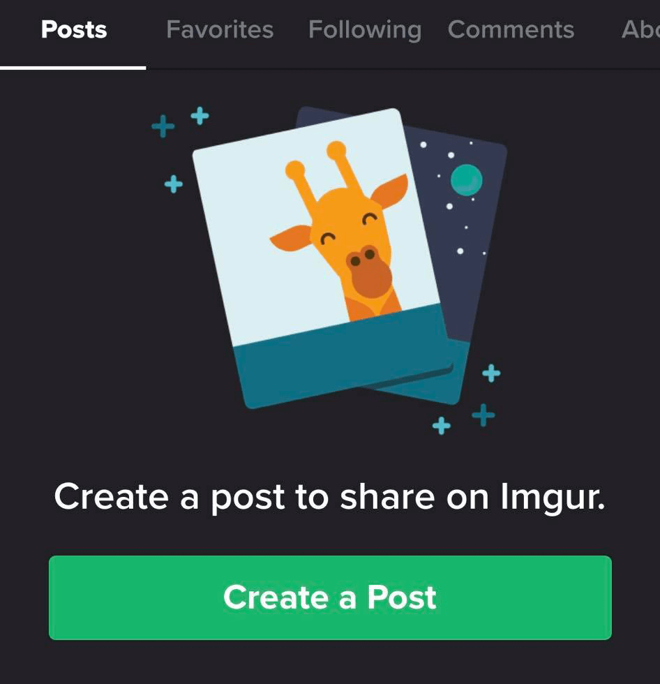 Nice example from Imgur on how to avoid a negative statement in an empty state. Instead of telling the user what’s not there, they let them know what they can do to fill it