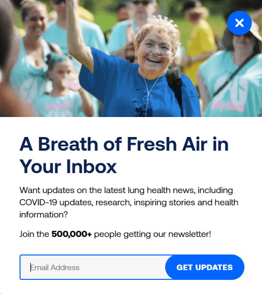 “Breath of fresh air” is nice and on brand for lung.org, and “get updates” makes it clear what you are signing up for.