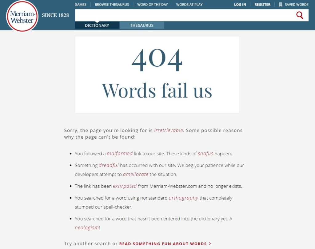 The American dictionary Merriam-Webster nails their 404 page simply by doing what they do best.