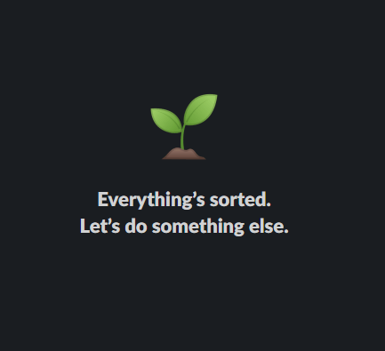 You can always count on Slack for spot-on microcopy. This empty state is simple, conversational, and is likely to make the user feel relaxed and accomplished. Great graphic, too.