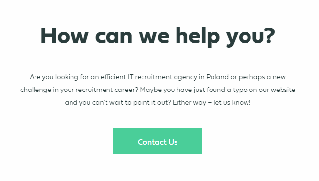 A quirky use of microcopy for a Contact us call to action of a recruitment agency – “let us help you find a job or perhaps you have found a typo.”