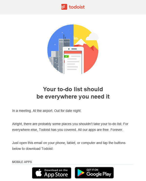 A master of the art of transactional emails – Todoist manages to be conversational, concise and useful.