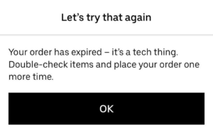 404 is not the only kind of error. This expiration message from Uber Eats let’s the user know it’s not their fault and tells them what to do next.